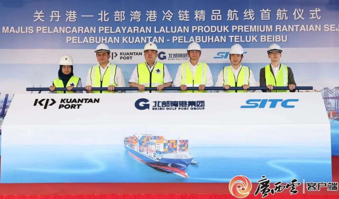 4月11日,在“海豐太平洋”貨輪悠長的鳴笛聲中,藍天立主席同馬來西亞交通部部長陸兆福、劉勝友以及現(xiàn)場嘉賓一起,為關(guān)丹港—北部灣港冷鏈精品航線開啟首航。