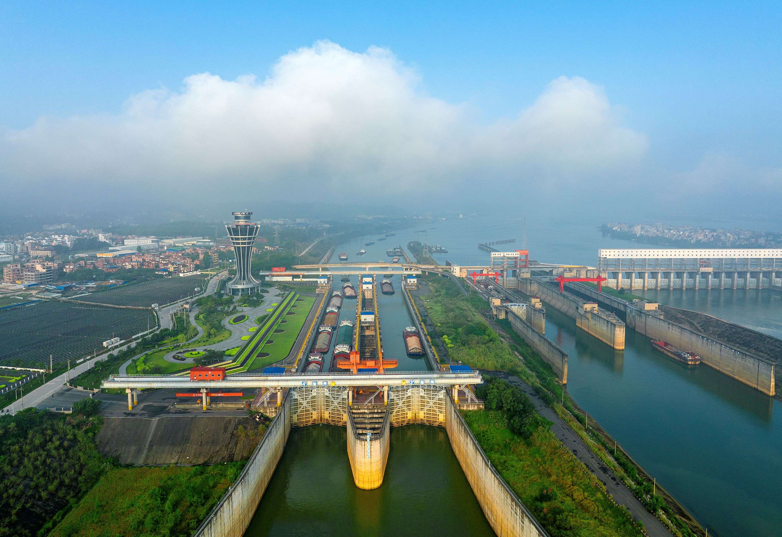 西津二線船閘建設(shè)一座3000噸級(jí)船閘,閘室有效尺寸為280米×34米×5.8米(長(zhǎng)×寬×門檻水深),2022年12月15日建成通航,年設(shè)計(jì)單向通過能力達(dá)2060萬噸。
