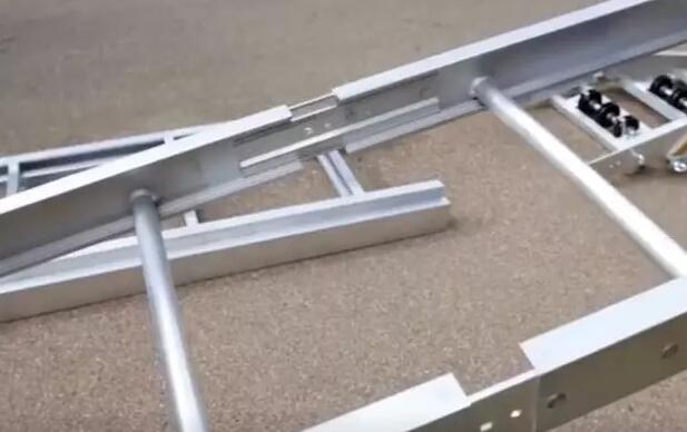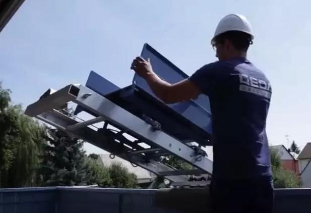 首先將運(yùn)貨架裝進(jìn)底部的梯段,然后就是將剩余的梯段一個(gè)接一個(gè),首尾相接拼裝起來(lái)。