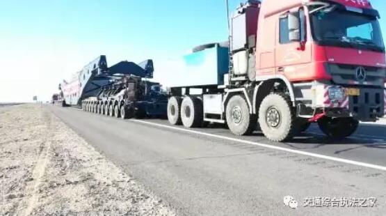 近日,特變電工股份有限公司新疆變壓器廠生產(chǎn)的目前最大、最重的變壓器由大件汽車運(yùn)輸有限責(zé)任公司裝車啟運(yùn)。該大件運(yùn)輸車輛總長115米,寬4.9米,高4.98米,車貨總重量達(dá)610噸,共28軸,采用2臺奔馳8x8、2臺3縱列12軸線的液壓平板車、1臺鉗夾式大型框架組成。面對如此艱巨的護(hù)送任務(wù),自治區(qū)路政管理局結(jié)合“不忘初心、牢記使命”主題教育,主動靠前,多措并舉全力保障超大型變壓器安全運(yùn)輸。