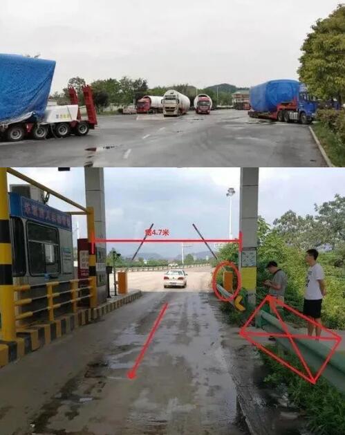 當然,運輸?shù)睦щy也不只來源于道路運輸過程中,運輸本身之外,遭遇的“困難”更加千奇百怪。比如因為車輛的載貨“巨大”收費站不夠?qū)挓o法通行。