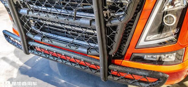 之后,車輛轉(zhuǎn)移到CCH公司,進(jìn)行結(jié)構(gòu)的適應(yīng)性改裝。車輛安裝了頂部燈架,并在上方安裝了四個(gè)大功率探照燈。為了契合整車的風(fēng)格,遮陽板也被涂成了橘紅色。燈箱上的SVETRUCK字樣采用白色粗體,營造出了富有活力的撞色效果。