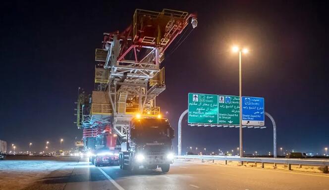 全球著名的大件運輸公司Mammoet(中文名:瑪姆特)近日從阿拉伯聯合酋長國向阿曼運輸了兩座陸上石油鉆井平臺。