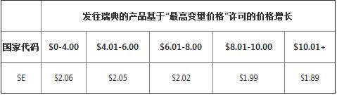 **僅適用于瑞典(SE),允許每個(gè)產(chǎn)品基于如下列表格所示的“最高變量?jī)r(jià)格”的運(yùn)費(fèi)上調(diào)。