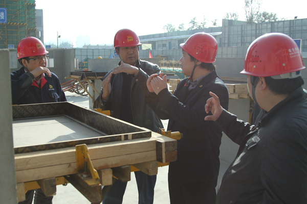 金域華府項目作為省住建廳、省建協(xié)確定的文明工地示范單位,在施工現(xiàn)場的規(guī)范管理、安全達標(biāo)、質(zhì)量創(chuàng)優(yōu)、環(huán)境保護及綠色施工等諸多方面都有著很高的學(xué)習(xí)借鑒價值。在觀摩活動過程中,我公司人員先后參觀了辦公區(qū)、生活區(qū)以及施工現(xiàn)場。其中,工廠化集中加工車間以及工人生活基礎(chǔ)設(shè)施等亮點環(huán)節(jié)給人留下了深刻的印象,該項目人員介紹說,實施工廠化集中加工管理模式,最大限度減少了對技術(shù)工人的依賴,實現(xiàn)部分材料的集中加工與配送,作業(yè)面的流水與拼裝施工,極大的提高了工作效率與施工質(zhì)量。隨后,雙方人員就一些現(xiàn)場施工管理方面的問題進行了深入的交流。