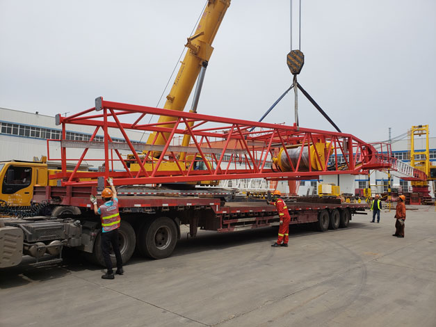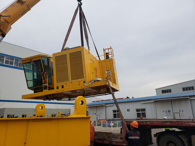 2018年5月21日凌晨5:30分左右,9輛貨車從青島市黃島區(qū)途經(jīng)青蘭高速發(fā)往青島城陽(yáng)區(qū)天時(shí)海洋石油裝備有限公司,此次淳遠(yuǎn)服務(wù)的項(xiàng)目是“保稅物流一日游”業(yè)務(wù)。大約7點(diǎn)30分,貨車依次駛?cè)胩鞎r(shí)海洋廠區(qū)內(nèi),此次運(yùn)輸?shù)呢浳锟傊貫?69噸的設(shè)備機(jī)組,上午8時(shí)許,操作正式開始。