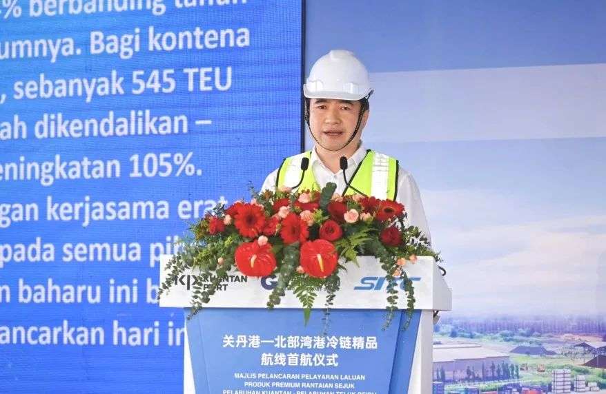 劉勝友在首航儀式上介紹,作為中國面向東盟的國際門戶港,北部灣港承載著新時代“向海圖強、開放發(fā)展”的使命。隨著廣西與馬來西亞經(jīng)貿(mào)交流日益緊密,北部灣港與關(guān)丹港在中馬兩國政府支持下,持續(xù)深化港航協(xié)作,2024年雙方實現(xiàn)貨物吞吐量近12萬噸,同比增長超144%;集裝箱吞吐量545標箱,同比增長105%,共同推動了關(guān)丹港成為馬來西亞吞吐能力最大的公共散貨港口。他說,此次冷鏈精品航線的開通,開辟出了一條新的跨境海運物流通道,是北部灣港集團深入貫徹共建“一帶一路”倡議、推動陸海新通道建設(shè)的重要成果,希望集團與馬來西亞各方攜手,以此次新航線開通為契機,從企業(yè)層面推動兩國貿(mào)易流通和互聯(lián)互通,共同打造高效、智能、綠色的現(xiàn)代化港口,為推動書寫中馬港航合作美好新篇章,助力共建中馬命運共同體作出新的貢獻。