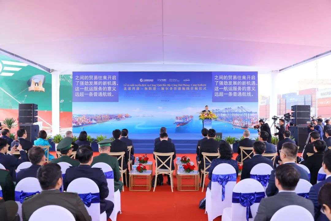 2月18日,“北部灣港—海防港—加爾各答港”航線首航儀式在越南海防港新武港區(qū)一號泊位舉行,標(biāo)志著中越合作邁入新階段,并為中國與東盟、南亞地區(qū)的經(jīng)貿(mào)往來注入新動力。該航線的開通不僅是深化中越戰(zhàn)略協(xié)同的重要舉措,更是助力高質(zhì)量共建“一帶一路”倡議和“兩廊一圈”框架對接合作、推動區(qū)域經(jīng)濟(jì)一體化的關(guān)鍵一步,對構(gòu)建具有戰(zhàn)略意義的中越命運共同體具有重要意義。北部灣港集團(tuán)黨委副書記、副董事長、總經(jīng)理劉勝友參加儀式并講話。