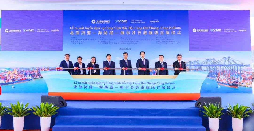 劉勝友和各方嘉賓一起見證了航線的開通,他在開通儀式的講話中指出,2024年8月,北部灣港集團(tuán)與越南航??偣竞炗喠藨?zhàn)略合作框架協(xié)議,并設(shè)立了國際陸海貿(mào)易新通道海防庭武分撥中心。如今再與越南航??偣?、中谷海運集團(tuán)等各方精心籌劃、通力合作,成功開通了“北部灣港—海防港—加爾各答港”航線,這是落實構(gòu)建中越命運共同體的又一務(wù)實之舉。2024年,中國成為越南第一個規(guī)模超2000億美元的貿(mào)易伙伴,越南已連續(xù)26年成為廣西第一大貿(mào)易伙伴國。集團(tuán)將以此次航線開通為契機(jī),深入貫徹落實中越兩黨兩國領(lǐng)導(dǎo)人達(dá)成的重要共識,持續(xù)深化港航物流合作,助推經(jīng)貿(mào)合作,促進(jìn)經(jīng)濟(jì)發(fā)展,從企業(yè)層面推動兩國人民友好往來。