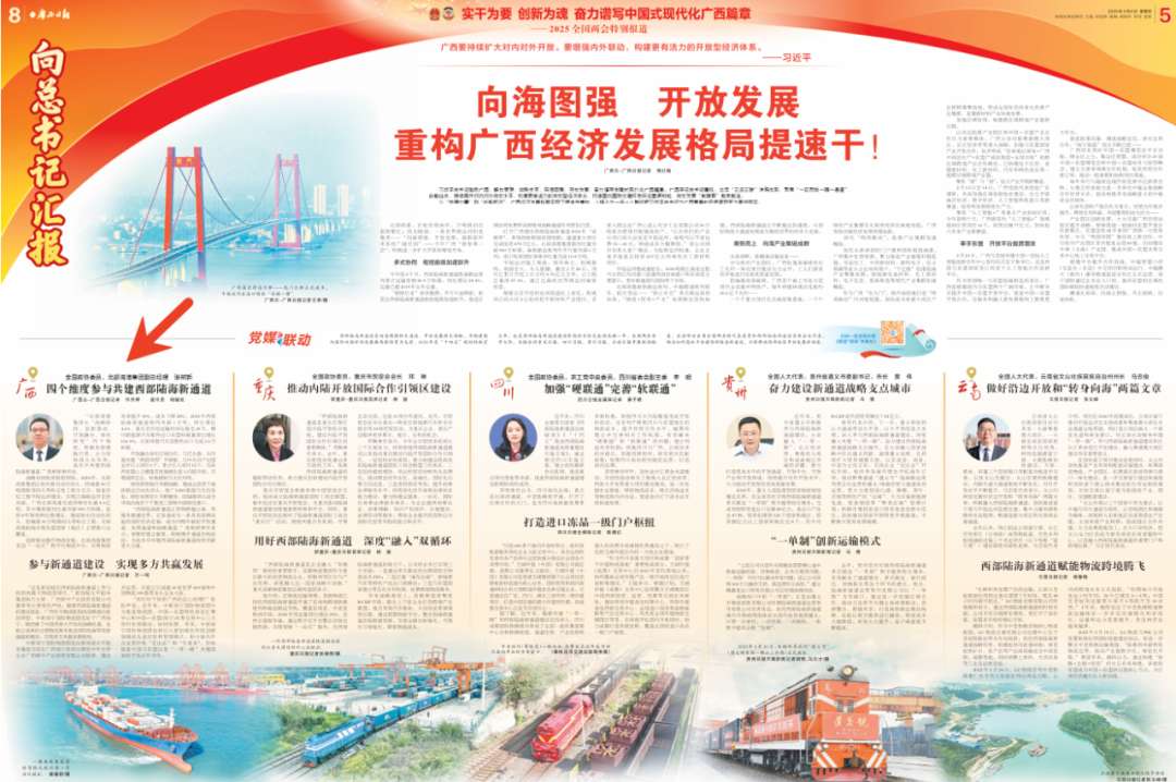 3月6日,《廣西日報》刊發(fā)了住桂全國政協(xié)委員、北部灣港集團副總經(jīng)理張樹新關(guān)于《四個維度參與共建西部陸海新通道》的文章,闡述在西部陸海新通道建設中,北部灣港集團以戰(zhàn)略協(xié)同、創(chuàng)新驅(qū)動、開放融合、綠色轉(zhuǎn)型四個維度為支點,書寫高質(zhì)量發(fā)展答卷。