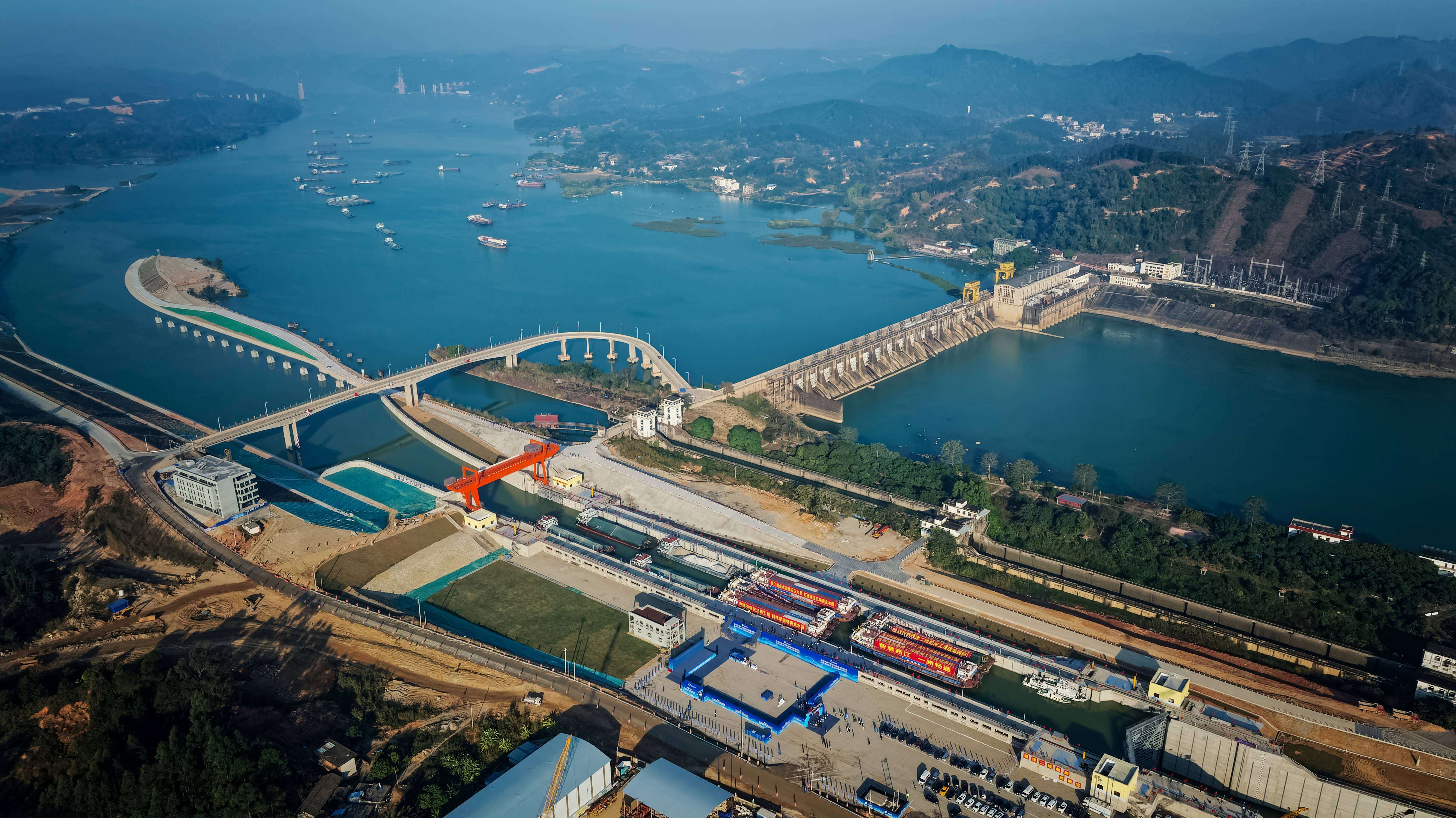 西津二線船閘建設(shè)一座3000噸級(jí)船閘,閘室有效尺寸為280米×34米×5.8米(長(zhǎng)×寬×門檻水深),2022年12月15日建成通航,年設(shè)計(jì)單向通過能力達(dá)2060萬噸。