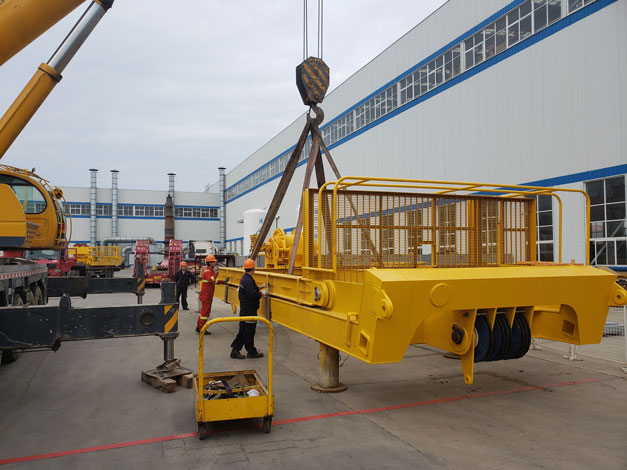 2018年5月21日凌晨5:30分左右,9輛貨車從青島市黃島區(qū)途經(jīng)青蘭高速發(fā)往青島城陽區(qū)天時海洋石油裝備有限公司,此次淳遠(yuǎn)服務(wù)的項目是“保稅物流一日游”業(yè)務(wù)。大約7點(diǎn)30分,貨車依次駛?cè)胩鞎r海洋廠區(qū)內(nèi),此次運(yùn)輸?shù)呢浳锟傊貫?69噸的設(shè)備機(jī)組,上午8時許,操作正式開始。